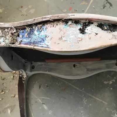The existing finish was far too chunky for the style of the table, and the Efex was lost in the chunk. Humm… not great for the lady who makes the Efex. Hence, I have always wanted to redo this table. Finally, last winter I decided to change it up a little bit. You can read all about the stripping here!